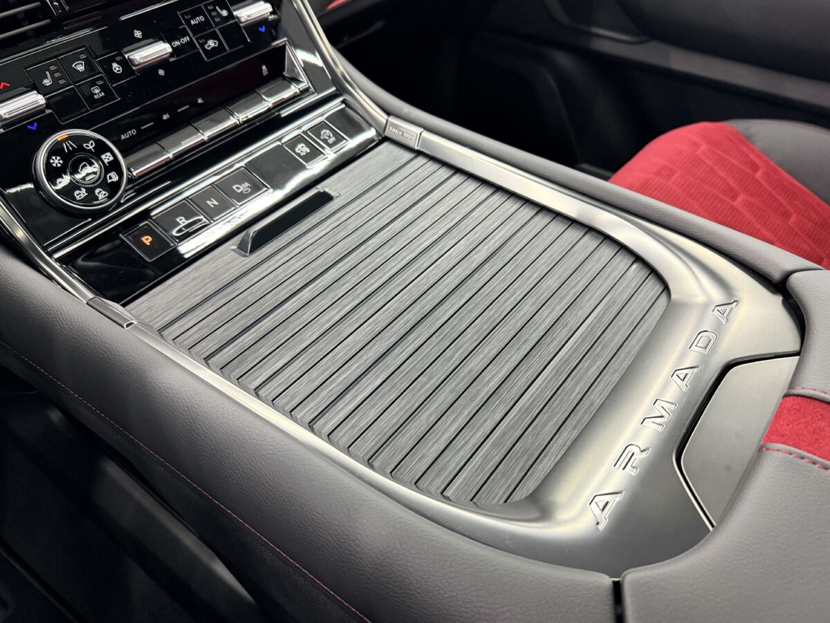 ワイヤレスでお持ちのスマートフォンと接続して、マップ機能(ナビゲーション)やスポティファイなどの再生、繋いでいるのはご自身のスマホになりますので、もともと最大限自分好みに設定済み。この機能を国産車とは段違いの巨大なディスプレイで使用できるのが、新型アルマーダのポイントです。