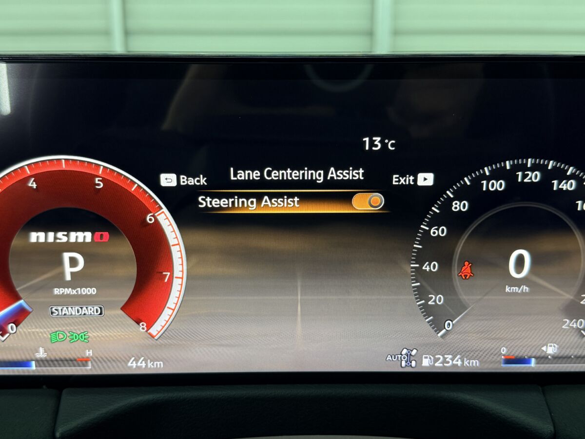 12時の方向に配置されたレッドアクセントは、ステアリングの向きを直感的に把握しやすくするための工夫でもあり、日常の運転からワインディングまで、自然な操作をサポートしてくれます。また、手にしっくりと馴染むグリップ形状により、長時間のドライブでも疲れにくく、安心してステアリングを握り続けることができます。センターのNISMOエンブレムが、ふとした瞬間に所有する喜びを感じさせてくれるのも魅力のひとつです。