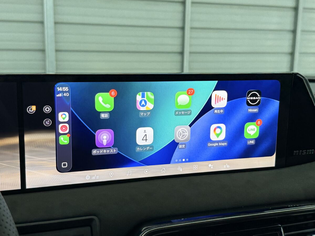 やはり気になるのが、日常使用時のナビゲーションなどが使えるのか?というところだと思います。最近はカープレイも装備として広まってきましたが、入庫車両のアルマーダNISMOにも勿論搭載されています。