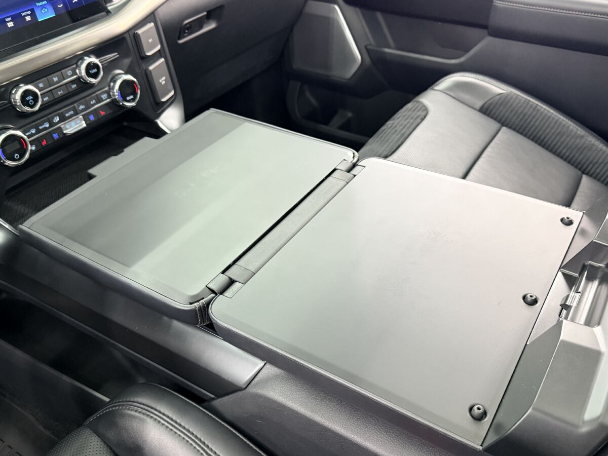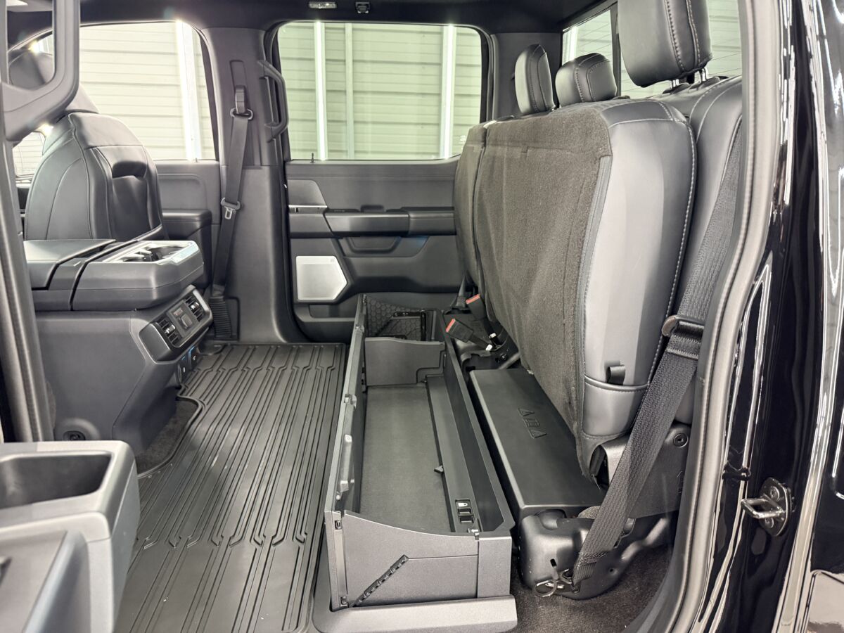 リアシートを跳ね上げると、シート下部には大型ストレージボックスが装備されています。無駄を省きつつスペース効率を最大限追い求めた結果、シート下部もストレージとして活用する。このような設計思想だからこそ、F150が長年にわたりアメリカのトラックオーナーから支持されているのではないでしょうか。