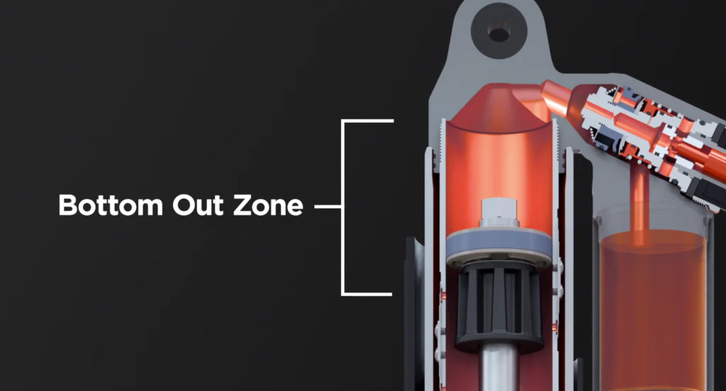 フルストローク時には最大の抵抗を発生させ、底付きを防止します。