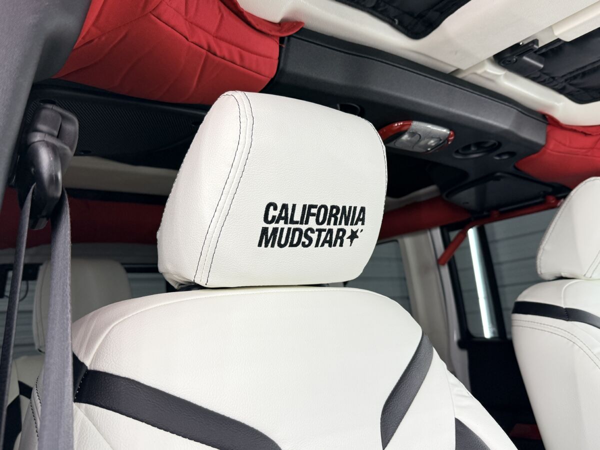 ヘッドレスト部分には白時にブラックでCALIFORNIA MUDSTARロゴが入ります。これがアクセントとなってインテリアをスペシャルな雰囲気に。