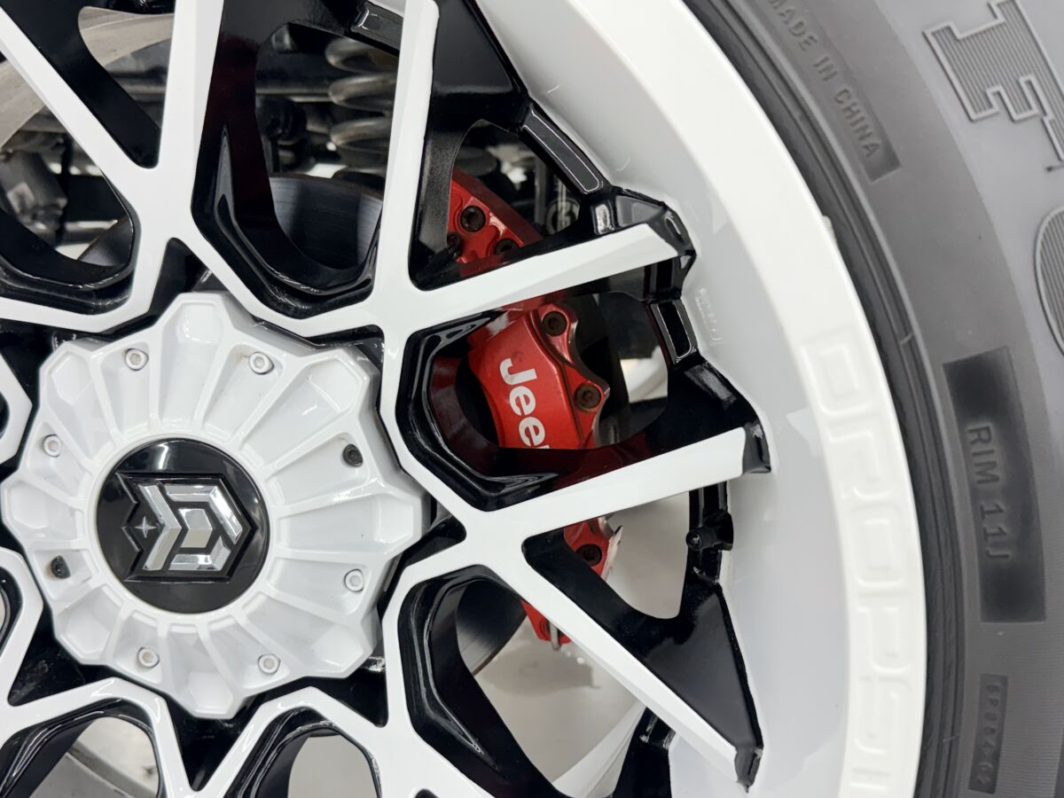 足元には、DROPSTARS製22インチアルミホイールを装着。大径サイズに加え、ワイド設定とディープリム構造により、標準車とは明確に異なるスタンスを形成しています。このクラスのホイールは単純な装着ができるものではなく、リム幅・オフセット・タイヤサイズの選定に加え、フェンダークリアランスや足回りのセッティングまで含めた調整が必要となります。見た目のインパクトだけでなく、実際の走行を前提としたフィッティングが求められるため、装着には確かなノウハウと技術力が不可欠です。