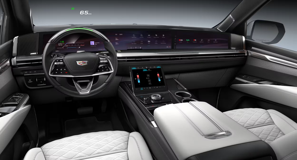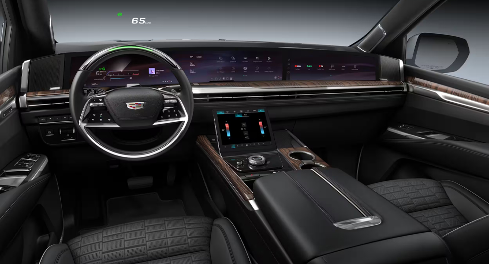 インテリアはEVエスカレードIQのインテリアを踏襲し、テクノロジーとラグジュアリーが共存する近未来のインテリアに変貌を遂げています。