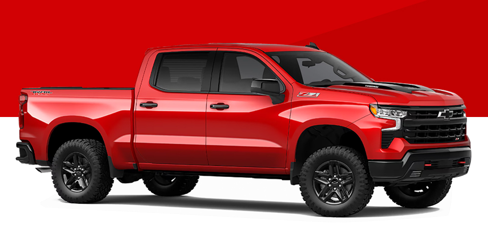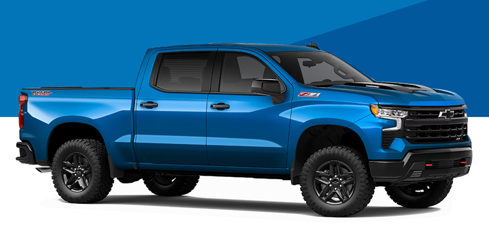 2024年モデルの変更点は、ハイカントリーに人気のミッドナイトエディションが設定されたことと、ダークアピアランスパッケージ(ブラックアウト)がカスタム、カスタムトレイルボス、RST、LTトレイルボスに設定されたことです。