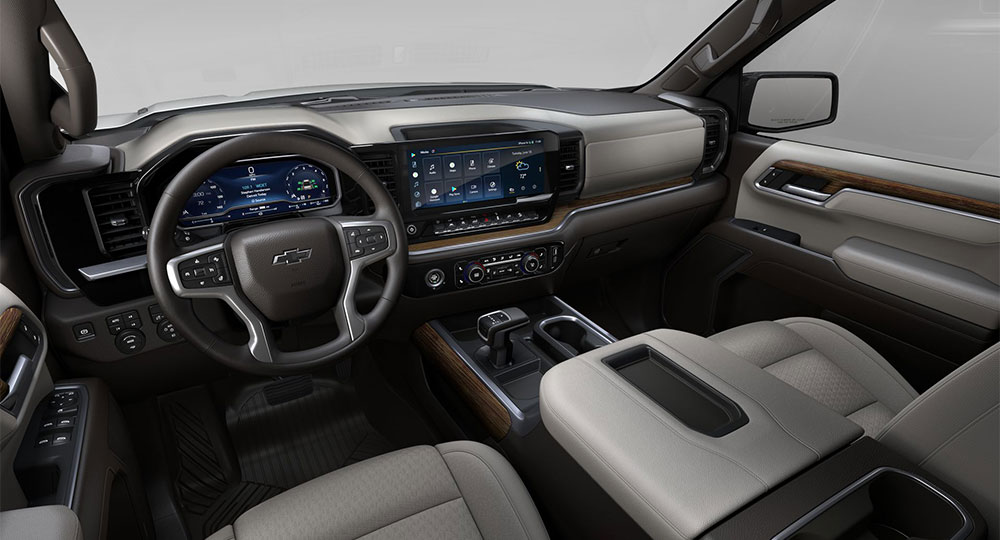 シルバラードのインテリアには、13.4インチタッチスクリーンと、12.3インチのデジタルメータークラスターパネルが組み込まれており、最新鋭のテクノロジーを搭載しています。