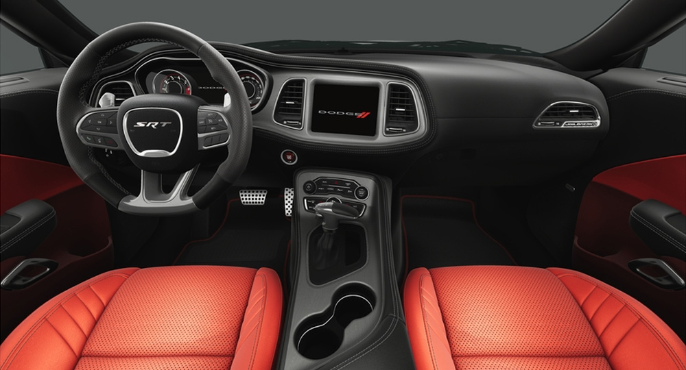 SRTのデュアルシュノーケルフードスクープ、往年のマッスルカーを連想させるシェイカーフード、スキャットパックストライプなど、チャレンジャーにはモパーマッスルのアイコンが全て揃っています。