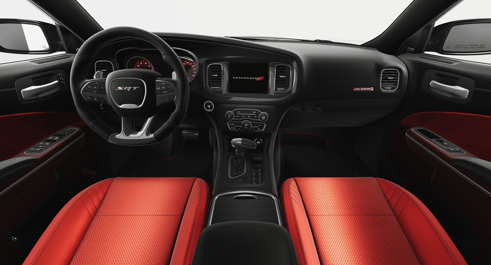 チャージャーの8.4インチタッチスクリーンモニターには、車両機能設定やエアコン表示、アップルカープレイ、SRTパフォーマンスページによるリアルタイムな走行データをモニタリングさせることが可能です。