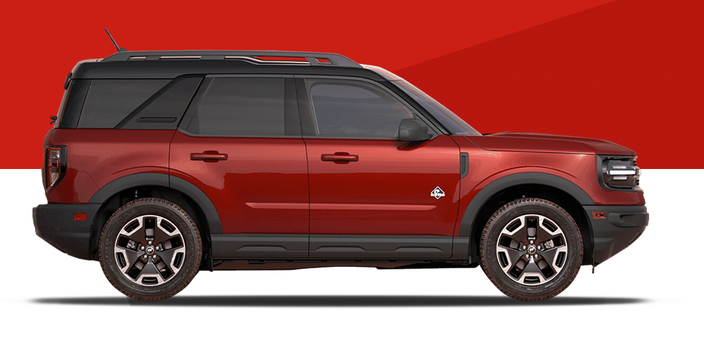 浮彫りのブロンコロゴはレッドカラーでペイントされており、エクステリアのアクセントとなっています。