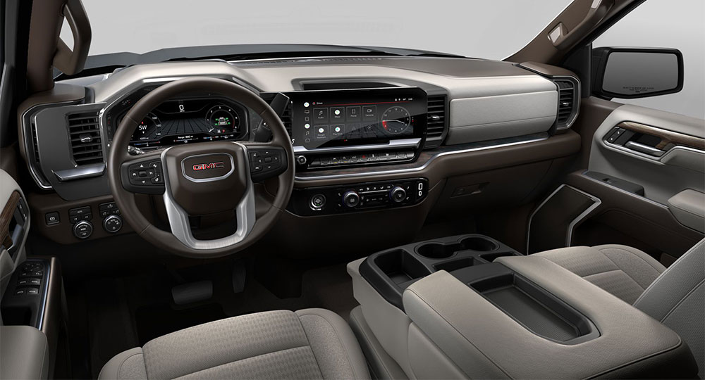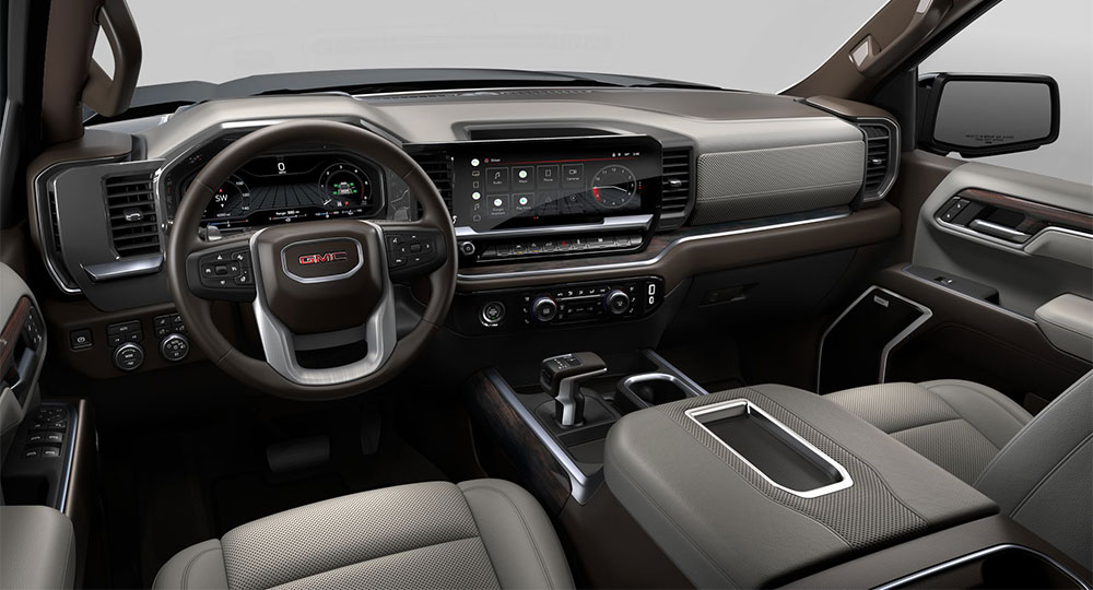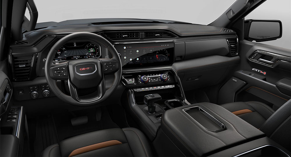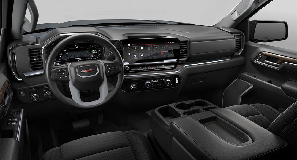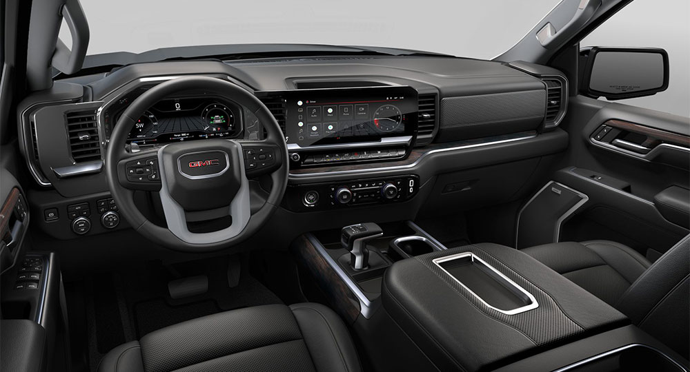 GMCプレミアムインフォテインメントシステムと呼ばれる、13.4インチタッチスクリーンをSLEグレードから標準装備。