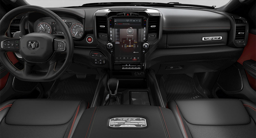 TRXの安全機構をはじめ、フルスクリーンでアップルカープレイやナビ画面を映し出すことができる12インチタッチスクリーンディスプレイを標準搭載。