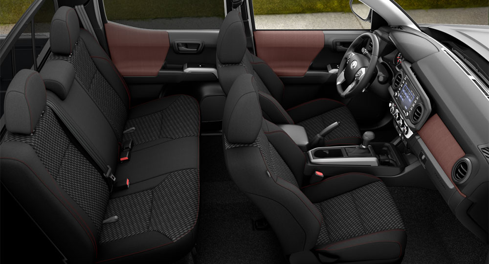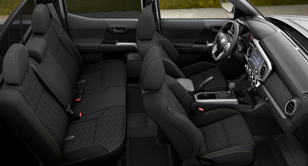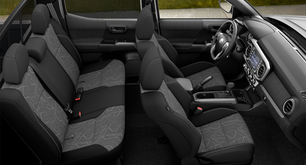 タコマはトヨタヘリテージグリルと呼ばれるヘキサゴンスタイルのグリルを装着し、アグレッシブな印象のフロントフェイスが人気となっています。
