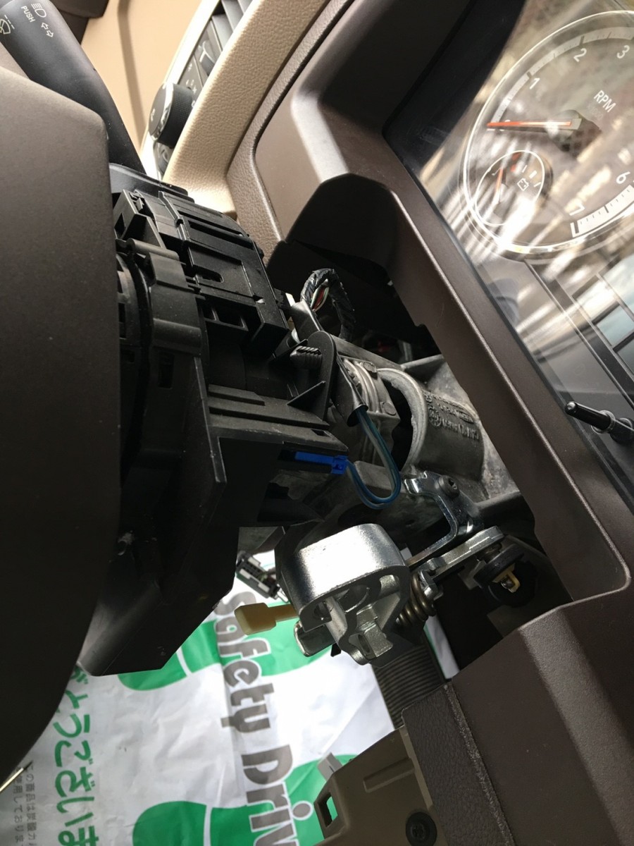 ダッジラムにお乗りのオーナー様よりエンジンを切っても鍵が抜けないという症状でご入庫いたしました。点検してみるとコラムシフター不良でした。部品が曲がっていて、パーキングに入れても信号が送られず、鍵が抜けない状態でした。コラム廻りを分解し、部品を交換し作業完了です。お困りのことがあればサービスファクトリーまでご用命ください!!お電話等のお問い合わせお待ちしております!!