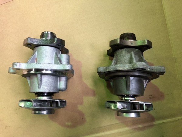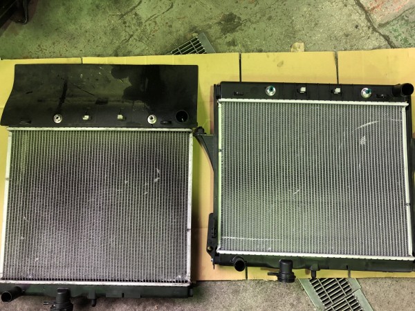古い部品と並べてみますと、ラジエーターも劣化してきてフィンも、ボロボロで